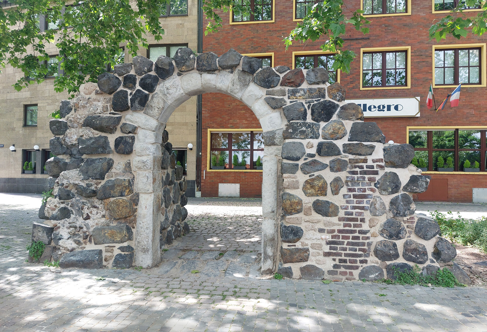 Nach der starken Kriegszerstörung der Häuser der Rheinuferzone am Ende des Zweiten Weltkriegs ragte das Bogenrund des Törchens aus den Schuttmassen hervor. Eine Zeichnung von Walter Wegener von 1951 (Kölnisches Stadtmuseum, Graphische Sammlung, Inv.-Nr. HM 1955/213/685) hält diesen Moment fest.