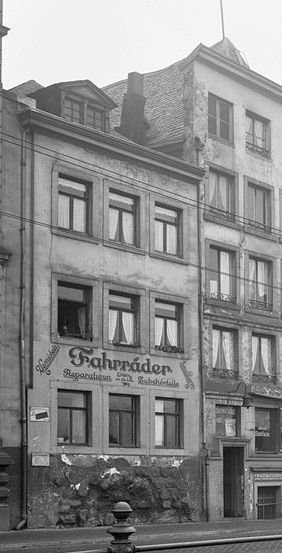 Durch den Bau der Kölner Markthalle, im Bereich des heutigen Maritimhotels, 1904, und den Bau der ersten Deutzer Hängebrücke 1913-15, war das historische Kölner Marktviertel bereits stark verändert worden. Der Wiederaufbau des Viertels nach dem Zweiten Weltkrieg unter dem Leitbild der "autogerechten Stadt" führte zur Verbreiterung der Rheinuferstraße und der Verlegung der Paradiesgasse (heute als Heumarkt bezeichnet) als Auffahrt zur Deutzer Brücke.
